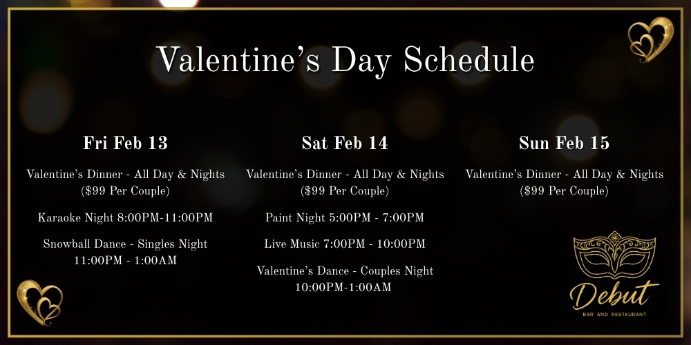 Tune in with the Morning Crew and play 30 Second Song Challenge to win a couples special at Debut Bar and Restaurant for their Valentine's Day Weekend Special!