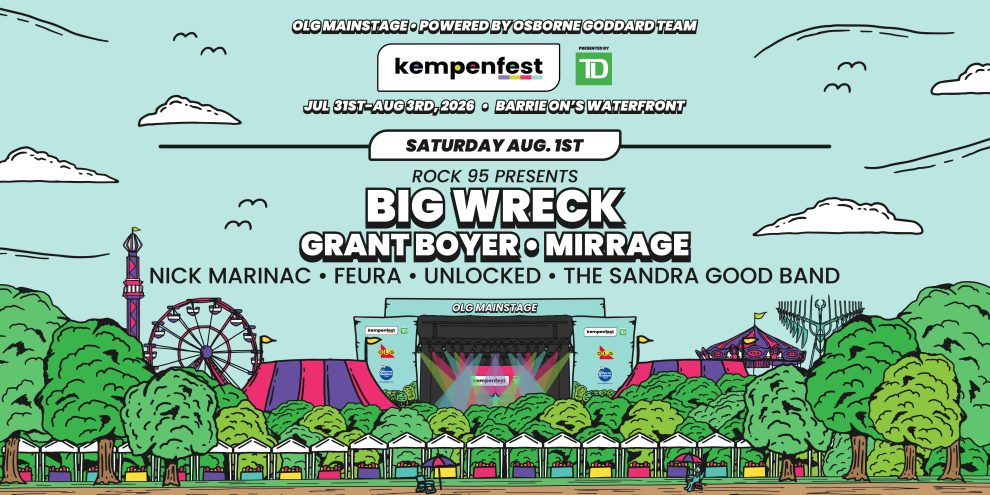 Big Wreck is set to rock the OLG Main Stage on Saturday, August 1st alongside special guests Grant Boyer, Mirrage, Nick Marinac, Feura, Unlocked and The Sandra Good Band. Presented by Rock 95.