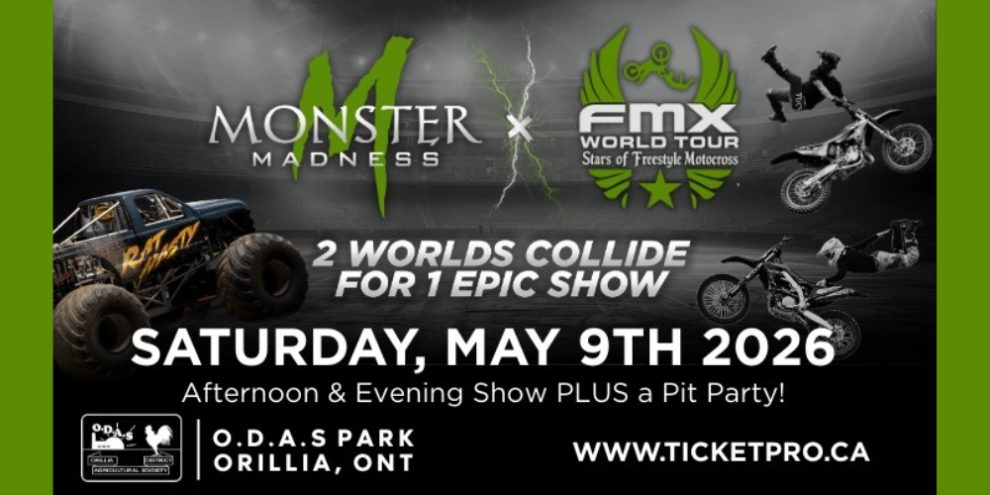 Feel the roar of the monster trucks as the Monster Madness Tour stops in Orillia Ontario at ODAS PARK with stars from the 'FMX World Tour' and more! This is an action-packed afternoon fans won't want to miss!