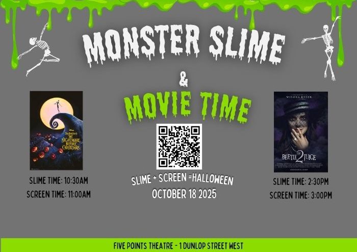 Join us Saturday, October 18, 2025 for two slime-filled screenings perfect for kids and grown-ups: