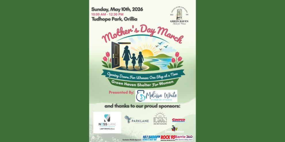Green Haven invites you to the 1st Annual Mother’s Day March – Sunday, May 10th at Tudhope Park, Orillia.