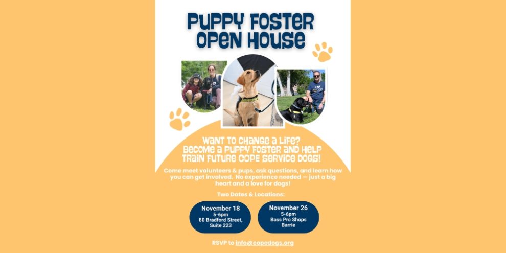 🐶✨ Ready to make a real difference? Join us for our Puppy Foster Open House and learn how you can help train the next generation of COPE Service Dogs!